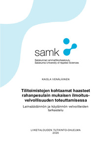 (2026)Opinnäytetyössä tarkasteltiin tilitoimistojen kohtaamia haasteita rahanpesulain mukaisen ilmoitusvelvollisuuden toteuttamisessa. Työn tavoitteena oli selvittää, millaisia haasteita tilitoimistot kokevat ilmoitusvelvollisuuden ... -