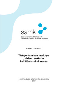 (2026)Työssä tarkasteltiin tietojohtamisen merkitystä kaupungin kehittämistoiminnassa ja vuonna 2025 käynnistetyn kehittämistoiminnan uudelleenorganisoinnin vaikutuksia. Tavoitteena oli kuvata miten tietojohtaminen tukee ... -