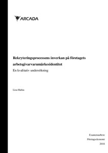 Fokus i detta arbete ligger på att besvara hur en rekryteringsprocess kan påverka kandidatens uppfattning om företaget som arbetsgivare. Syftet med detta arbete är att besvara vad en rekryteringsprocess innebär ur den arbetssökandes perspektiv och vad som bidragit till en positiv eller negativ upplevelse. Det är vanligt att man diskuterar rekryteringsprocesser och delar med sig åsikter om företag, vilket inverkar på företagens varumärke som arbetsgivare. Ifall kandidaten känner sig felbehandlad eller diskriminerad, glömmer kandidaten det inte lätt, vilket bidrar till en försämrad bild av företaget som arbetsgivare. Sammanlagt intervjuades nio respondenter som under de senaste fyra åren varit med om rekryteringsprocess som slutat i ett negativt besked. Arbetet är begränsat till individer i åldersklassen 20-30 år som sökt arbete i Nyland. Respondenterna intervjuades i grupper på tre. Resultaten av intervjuerna är oroväckande, eftersom endast en av respondenterna behållit samma positiva åsikter om företaget som innan processen. För de andra hade uppfattningen om företaget i fråga försämrats. Dessutom skulle majoriteten av respondenterna varken rekommendera företaget för någon annan eller söka på nytt. Det som lett till en försämrad bild av företaget som arbetsgivare var bristande kommunikation och information längs med processen. Det som bidragit till en positiv upplevelse var klar kommunikation och information längs med processens gång och även återkoppling efter beslutet. Eftersom rykten sprids snabbt på sociala medier och människor gärna delar med sig erfarenheter, har företagen inte råd med misslyckade rekryteringsprocesser, ifall de vill behålla en positiv bild som arbetsgivare. Framöver bör företag tilltala kandidaterna på samma sätt som företaget kommunicerar med sina kunder. För att behålla ett positivt varumärke som arbetsgivare bör företagen bemöta alla kandidater med öppet sinne och respekt. The focus of this work is to answer how a recruitment process can affect the candidate's percep-tion of the company as an employer. The purpose of this work is to answer what a recruitment process includes and how it is seen from the job seeker's perspective. Moreover, this study will answer what contributed to a positive or negative experience. It is common to discuss recruit-ment processes and share opinions about companies, which affects the corporate brand as an employer. If the candidates feel discriminated, they won´t forget it easily, which contributes to a deterioration of the company's image as an employer. A total of nine respondents was inter-viewed for this study. All of them have been in recruitment process in the last four years and ended up not receiving the position. The study is limited to individuals in the age group 20-30 years who applied for work in Nyland. Respondents were interviewed in groups of three. The results of the interviews are worrying, as only one of the respondents maintained the same posi-tive opinions about the company as before the process. For the others, the perception of the company had deteriorated. In addition, most of the respondents would neither recommend the company to anyone nor seek again. What led to a deteriorated image of the company as an em-ployer was the lack of communication and information along the process. What contributed to a positive experience was clear communication and information along the way of the process as well as feedback after the decision. Because rumors are spread rapidly on social media and peo-ple like to share experiences, companies cannot afford failed recruitment processes if they want to keep a positive image as employers. In the future, companies should focus on how they re-spond to their candidates and how communication works. To maintain a positive identity as an employer, companies should appeal to candidates in the same way that the company communi-cates with its customers.