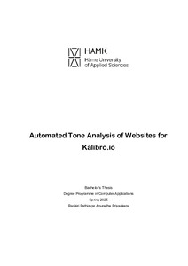 (2025)The purpose of this thesis was to develop an AI-powered system for automated tone analysis of website content for Kalibro.io, a digital optimization platform by Calevala Interactive Ltd. While Kalibro.io currently evaluates ... -