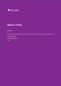 (2025)This thesis examines why young professionals share positive work-related content on social media and how such activity influences perceptions of their employer’s image. The study focuses on LinkedIn, Instagram, and TikTok, ...