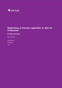 (2025)Målet med studien är att fördjupa kunskapen om kvinnors upplevelse och behov av stöd vid bröstcancer. Frågeställningen lyder: Vilket behov av stöd beskriver kvinnor med bröstcancer? För att få svar på frågeställningen har ... -