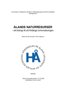 (2025)Arbetet undersöker hur Ålands naturresurser, särskilt jaktturism och andra naturbaserade aktiviteter, kan bidra till att förlänga turismsäsongen under vår och höst. Syftet är att förstå vilka upplevelser som har störst ... -