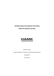 The author’s aim in this thesis project was to develop a machine learning model, which could create short-term forecasts regarding heating energy consumption of a building. Even short-term energy consumption forecasts can have a major impact on building automation and energy distribution systems. Possible application spheres include smart grid development and simpler maintenance.