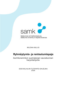 (2026)Tämä toiminnallinen opinnäytetyö käsittelee ryhmäytymis- ja rentoutumispajan suunnittelua, toteutusta ja arviointia Aurinkorannikon suomalaisessa seurakunnassa työskenteleville harjoittelijoille. Opinnäytetyön tarkoituksena ... -