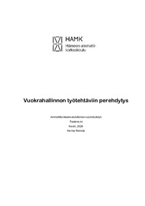 (2026)Tämä opinnäytetyö kertoi vuokrahallinnon keskeisimmistä työtehtävistä sekä perehdytyksestä. Opinnäytetyössä vuokrahallinnon työn sekä perehdytyksen käsitteitä avattiin käytännönläheiseksi ja ymmärrettäviksi, ja lopuksi ...