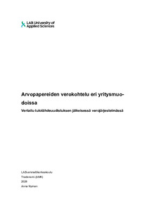 Arvopapereiden verokohtelu eri yritysmuodoissa : vertailu tulolähdeuudistuksen jälkeisessä verojärjestelmässä