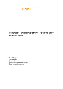 (2026)Opinnäytetyön tavoitteena oli luoda isometrisen rpg-pelin prototyyppi Unityn pelimoottorin avulla. Opinnäytetyössä keskityttiin suurimmaksi osaksi toiminnallisuuteen, grafiikat ja musiikit jätettiin taka-alalle. Prototyyppiin ...Avoin saatavuus / Open access / Öppen tillgång -
