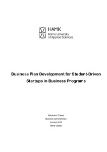 (2026)This bachelor´s thesis examines business plan development in student-driven startups and explores how novice entrepreneurs approach business planning in practice. The topic reflects the growing interest in entrepreneurship ... -