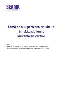 (2026)Tämän opinnäytetyön tarkoituksena oli selvittää röntgenhoitajaopiskelijoiden kokemuksia vuorovaikutustaitojen kehittymisestä kliinisten harjoitteluiden aikana. Opinnäytetyön tavoitteena oli tarjota tietoa harjoitteluyksiköille ... -