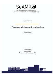 (2025)Opinnäytetyön tavoitteena oli tutkia palautteen vaikutusta myyjän motivaatioon. Tarkoituksena oli selvittää, miten organisaation X myyjät kokevat esihenkilöiltä, kollegoilta ja asiakkailta saamansa palautteen vaikutuksen ... -