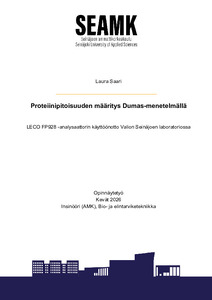 Proteiinipitoisuuden määritys Dumas-menetelmällä : LECO FP928 -analysaattorin käyttöönotto Valion Seinäjoen laboratoriossa