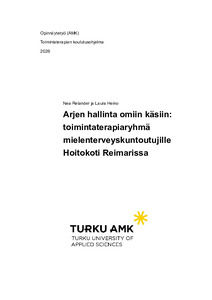 Arjen hallinta omiin käsiin : toimintaterapiaryhmä mielenterveyskuntoutujille Hoitokoti Reimarissa