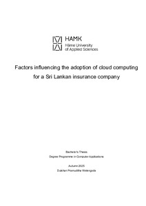 Factors influencing the adoption of cloud computing for a Sri Lankan insurance company