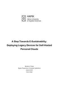 (2025)This thesis assesses the feasibility of deploying a Self-Hosted Personal Cloud (SPC) systems on legacy devices ascertaining sustainable and data privacy focused alternative to Commercial Cloud Platforms (CCPs). Further, ... -