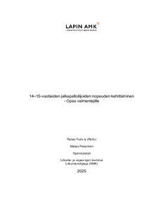 (2025)Tässä opinnäytetyössä tarkasteltiin 14–15-vuotiaiden jalkapalloilijoiden nopeuden kehittämistä. Työn tavoitteena oli selvittää, miten nuoren jalkapalloilijan nopeutta kehitetään optimaalisesti huomioiden kuitenkin myös ... -