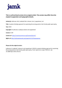Frontiers in sports and active living (Frontiers Media S.A., 2025)Background and study aim: This study proposes a longitudinal analysis of the Finnish public sports policy and explores the dynamics between turning points from a systems thinking perspective. We argue that a better ... -