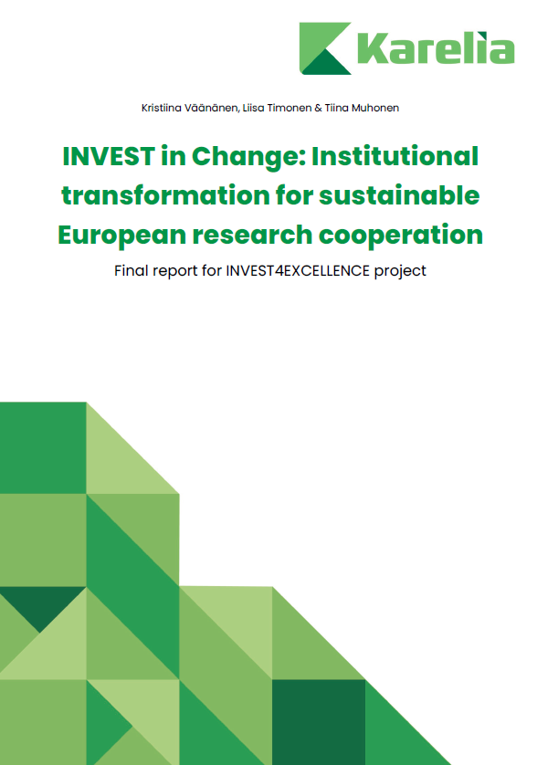 Publications of Karelia University of Applied Sciences C, Reports (Karelia University of Applied Sciences, 2024)INVEST4EXCELLENCE (I4E) was a Horizon2020 -funded research and development project which aimed to strengthen the Research, Development and Innovation (RDI) potential of the international European University Alliance INVEST, ... -