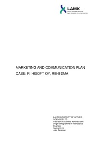 The aim of the thesis was to create a marketing and communication plan for a cloud computing service called Riihi DMA. The service created by the company called Riihisoft was the case company of the thesis. The company provides different IT services and operates in Riihimäki.