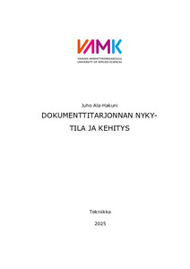 (2025)Tämä opinnäytetyö toteutettiin ABB Oy:n IEC LV Motors -yksikön sovellussuunnitteluosaston toimeksi antamana. Opinnäytetyön tavoitteena oli kartoittaa dokumentaation nykytila, tulevat kehityskohteet ja niille mahdollisia ... -