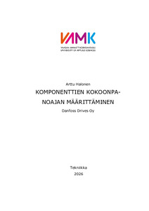 (2026)Opinnäytetyön tarkoituksena oli muodostaa työaikastandardi, jonka avulla voidaan määrittää laitteen kokoonpanoaika projektin aikaisessa vaiheessa. Standardin luonti perustuu laitteissa käytetyistä osista, jotka voidaan ... -