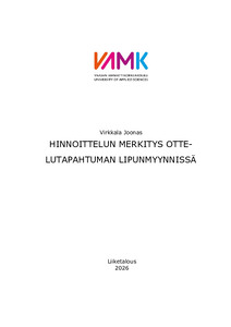 (2026)Tämän opinnäytetyön tavoitteena on analysoida hinnoittelun roolia suomalaisten liigaseurojen ottelutapahtumien lipunmyynnissä. Tarkastelun kohteena on erityisesti se, miten lipun hinta vaikuttaa kuluttajien osallistumispäätöksiin ... -