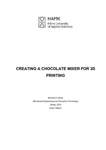(2024)This thesis explores the design and analysis of a specialized mixer tailored for the production of optimal material feed for 3D chocolate printers. The objective is to enhance the efficiency and precision of chocolate-based ... -