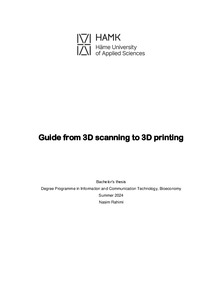 (2024)The aim and purpose of this thesis were to provide comprehensive written instructions on 3D scanning techniques For the 3D printing workshop at Häme University of Applied Sciences Forssa campus. The thesis focused in ... -