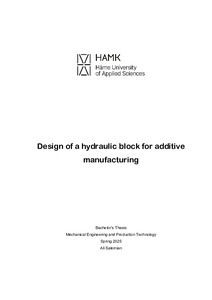 (2025)This thesis is about design of a hydraulic block for additive manufacturing, which focuses on the current technology, quality and performance improvements based on available literature. Conventionally the hydraulic blocks ... -