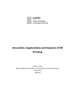 Innovation, Applications and Impacts of 3D Printing