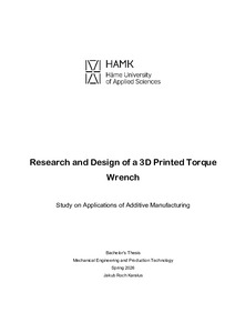 (2020)The purpose of this thesis was to examine connecting methods for joints created of two dissimilar materials – plastics and metals. Another considerable goal in the project was integrating 3D printing technology to produce ... -