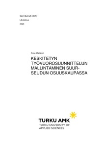 Tässä opinnäytetyössä oli tarkoituksena mallintaa ja dokumentoida toimeksiantajayrityksen Suur-Seudun Osuuskaupan käytössä oleva keskitetty työvuorosuunnitteluprosessi. Keskitetty työvuorosuunnittelu on keskeinen osa Suur-Seudun Osuuskaupan henkilöstötoimintoja ja sillä on merkittävä rooli yrityksen henkilöstöresurssien käytössä. Toimeksiantajalle oli tärkeää, että keskitetyn työvuorosuunnittelun prosessiin liittyvä ns. ”hiljainen tieto” saadaan mallinnettua prosessikuvaukseksi.