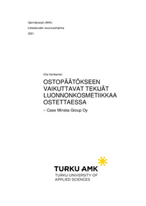 Tässä opinnäytetyössä selvitettiin ostopäätökseen vaikuttavia tekijöitä luonnonkosmetiikkaa ostettaessa. Työn toimeksiantaja Minska Group Oy on uudistanut verkkokauppansa syksyllä 2021, jonka myötä myös asiakkaiden ostoprosessia on pyritty parantamaan entisestään. Opinnäytetyön tavoitteena oli tutkia luonnonkosmetiikan ostopäätökseen vaikuttavia tekijöitä ja luoda Minskalle kehitysideoita, joiden avulla yritys voisi helpottaa asiakkaidensa ostopäätöstä verkkokaupassa.
