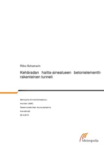 Insinöörityössä tutkittiin Kehäradan haitta-ainealueen betonielementtirakenteista tunnelia. Työssä selvitettiin betonielementtirakenteisen tunnelin suunnittelussa huomioitavia tekijöitä, elementtirakenteiseen tunneliin liittyviä ongelmia ja ongelmien ratkaisuja. Lisäksi tutkittiin betonielementtirakenteen valinnan perusteita, elementeille ja liitoksille asetettuja vaatimuksia sekä asennuksen vaikutusta suunnitteluun. Työ tehtiin Pöyry Finland Oy:lle, joka toimii Kehäradan tunneliosuuden kokonaissuunnittelijana.