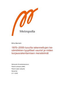 1970–2000-luvuilla rakennettujen kesämökkien tyypilliset vauriot ja niiden korjausrakentamisen menetelmät