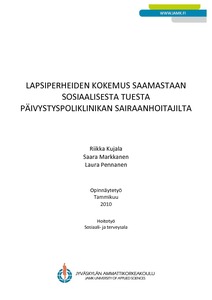 Lapsiperheet kokivat saavansa keskimäärin hyvää sosiaalista tukea. Sosiaalisen tuen osa-alueista sairaanhoitajilta saatu emotionaalinen tuki koettiin riittävimpänä ja lapsiperheiden kokemukset siitä olivat valtaosin yhtenäisiä. Tiedollinen tuki ja konkreettinen tuki arvioitiin keskimäärin hyviksi, mut-ta lapsiperheiden kokemukset niistä olivat hajanaisia.