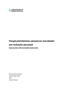 Opinnäytetyön yhteistyökumppanina ja toimeksiantajana toimi LAB-ammattikorkeakoulu. Opinnäytetyö toteutettiin toiminnallisena opinnäytetyönä, jonka tarkoituksena oli tuottaa opetusvideo LAB-ammattikorkeakoulun sairaanhoitajakoulutukseen hengitystieinfektiota sairastavan imeväisikäisen hoitotyön perusteista. Opinnäytetyön tavoitteena on edistää ja lisätä sairaanhoitajaopiskelijoiden tietoja ja taitoja hengitystieinfektioisen imeväisikäisen hoitotyön perusteista. Opinnäytetyön aineistolähteinä käytettiin näyttöön perustuvia tutkittua tietoa.
