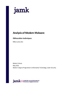 Koska obfuskointitekniikat ovat yksi tärkeimmistä haittaohjelmien käyttämistä keinoista vältellä ja piiloutua analysoinnilta tässä opinnäytetyössä on tutkittu mahdollisimman kattavasti erilaisia obfuskointitekniikoita ja samalla analysoitu järjestelmien mahdollisuuksia suojautua näitä tekniikoita vastaan, sekä arvioitu minkälaisia mahdollisia uusia kehityssuuntia voi olla tulossa. Työn tavoitteena oli auttaa yrityksiä ja yksityishenkilöitä ymmärtämään haittaohjelmien nykyisiä ja tulevia tapoja vältellä järjestelmien suojautumiskeinoja sekä piiloutua analysoinnilta.