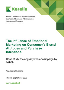 This thesis delves into the influence of emotional marketing on the consumer brand attitudes and purchase intentions, focusing on the Airbnb’s campaign “Belong anywhere” as a case study. Using a mixed-methods research approach, the study reveals the profound impact of emotional marketing strategies on shaping consumer attitudes and behaviors.
