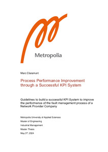 This report explains the current state analysis of the fault management process, where it is argued that the root cause of the process underperformance is its KPI system. It also researches and elaborates on relevant literature findings and best practices applicable to solve the observed flaws. Then proceeds with the co-creation of a solution and set of guidelines on how to build a successful KPI system around the fault management process and finally, the validation stage of this proposal.