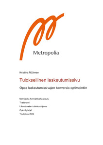 Opinnäytetyö toteutettiin toiminnallisena opinnäytetyönä, jonka tuloksena oli opas yrityksen laskeutumissivujen analyysiin ja kehittämiseen. Viitekehyksessä käsiteltiin konversio-optimointia markkinoinnin osa-alueena, konversio-optimoinnin etuja ja sitä, miksi laskeutumissivuja kannattaa optimoida. Työssä kuvailtiin lyhyesti myös eri vaihtoehdot optimoinnin toteuttamiseen. Opas soveltuu yrityksille, jotka eivät syystä tai toisesta ole tutustuneet konversio-optimointiin ja jotka kokevat aloittamisen hankalaksi. Näissä yrityksissä yleisten teknologisten työkalujen käyttö ei tuota esteitä.