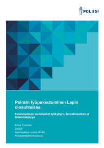 (2026)Tämä opinnäytetyö käsittelee poliisin työpukeutumista Lapin olosuhteissa ja sen vaikutuksia poliisin työkykyyn, työturvallisuuteen ja toimintakykyyn. Työn aiheena on Lapin olosuhteissa työskentelevien poliisien ... -