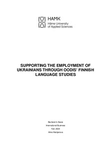 This thesis explores how OODI’s Finnish language studies can support the employment of Ukrainians in Finland. The OODI project targets Ukrainians with temporary protection in Finland who fled the conflict in Ukraine.