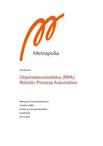 Insinöörityön aiheena oli ohjelmistorobotiikka ja UiPath-ohjelmistoon tutustuminen käytännössä. Ohjelmistorobotiikan insinöörityön tarkoituksena oli aikaansaada kirjallinen tuotos, joka tarjoaa tietoa ohjelmistorobotiikasta, sen hyödyistä ja käyttötarkoituksista, sekä nimetä esimerkkejä ohjelmistorobotiikkaa käyttävistä suurimmista yrityksistä kaikille aiheista kiinnostuneille osapuolille sekä aihetta opiskeleville. Insinöörityö auttaa lisäksi hahmottamaan, mitä ohjelmistorobotiikka on, miten ja missä sitä käytetään.