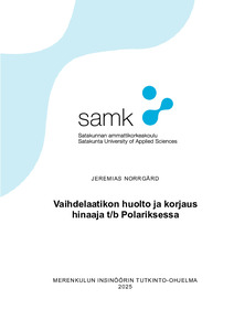 Tämän opinnäytetyön tavoitteena oli kuvata ja analysoida hinaaja t/b Polariksen vaihdelaatikon huolto- ja korjausprojekti sekä tunnistaa siihen liittyviä kehittämistarpeita. Työssä vastattiin käytännön tarpeeseen parantaa raskaan hinaajakäytön voimansiirron kunnossapitoa ja ehkäistä ennakoimattomia vikaantumisia. Työelämän yhteistyökumppaneina toimivat käytännössä varustamo, jonka hinaajalle työ tehtiin sekä muut merenkulun varustamot, joilla on käytössään samantyyppistä kalustoa.