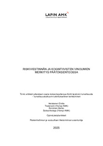 (2025)Tämän monialaisen opinnäytetyön tarkoituksena oli kehittää riskiviestinnän menetelmiä ja pyrkiä tukemaan yksilön päätöksentekoprosessia kognitiiviset vinoumat huomioiden. Nykyajan maailmantilanne vaatii yrityksiltä erityistä ... -