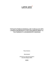 (2025)Tämän opinnäytetyön aiheena oli perusopetuksen opetussuunnitelman (2014) liikunnan tavoitteiden toteutuminen Karakallion yläkoulussa oppilaiden näkökulmasta. Tarkoituksena oli selvittää, miten fyysisen, psyykkisen ja ... -