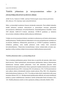 Tiedolla johtaminen ja terveysosaaminen mikro- ja yksinyrittäjyydessä terveyskriisin aikana