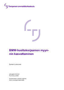 (2026)Opinnäytetyön tavoitteena oli luoda kehitysehdotuksia, joiden avulla yritys voisi kasvattaa myyntituottojen määrää BMW-huoltokorjaamolla. Erityisesti työmääräyskohtaisissa euromääräisissä loppusummissa oli parannettavaa ...