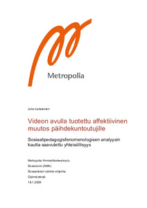 Videon avulla tuotettu affektiivinen muutos päihdekuntoutujille : sosiaalipedagogisfenomenologisen analyysin kautta saavutettu yhteisöllisyys